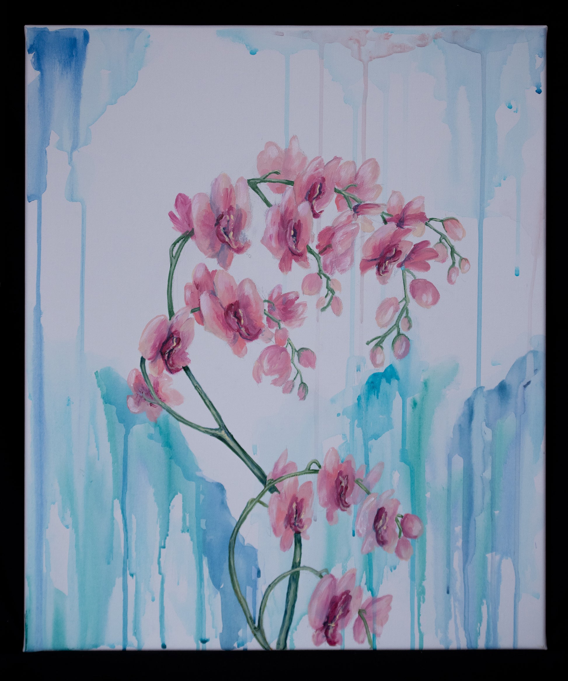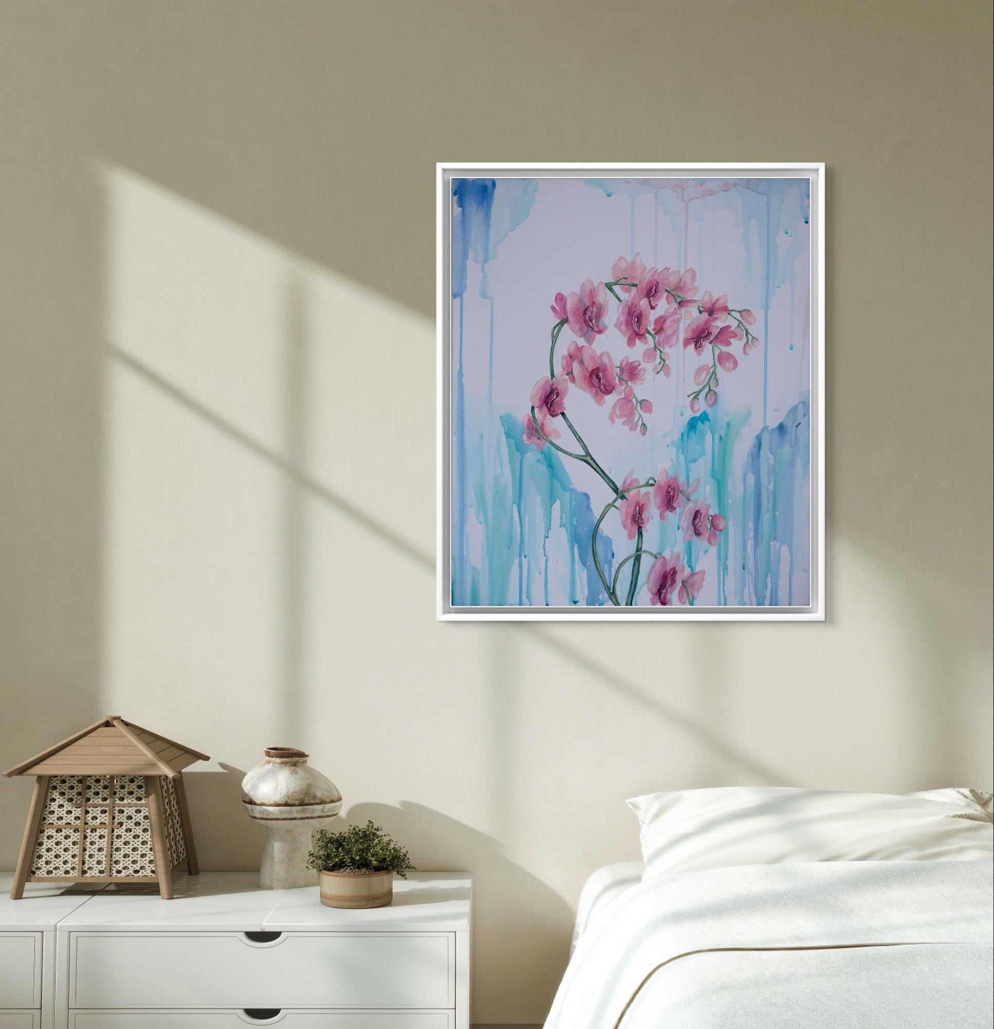 "Melting Euphoria" is the last of the four "melting" artworks in the "Magic Garden" collection, featuring the delicate beauty of pink orchids. This acrylic artwork, painted in a watercolor manner, completes this series with a sense of refined elegance and grace. The orchids cascade gently down the canvas, their vibrant pink hues blending seamlessly with the soft, flowing background. The melting effect, with subtle drips of color, enhances the dreamlike quality of the scene, creating a mesmerizing visual experience. "Melting Euphoria" captures the essence of delicate beauty and serene tranquility, inviting viewers to immerse themselves in the enchanting world of blooming orchids.